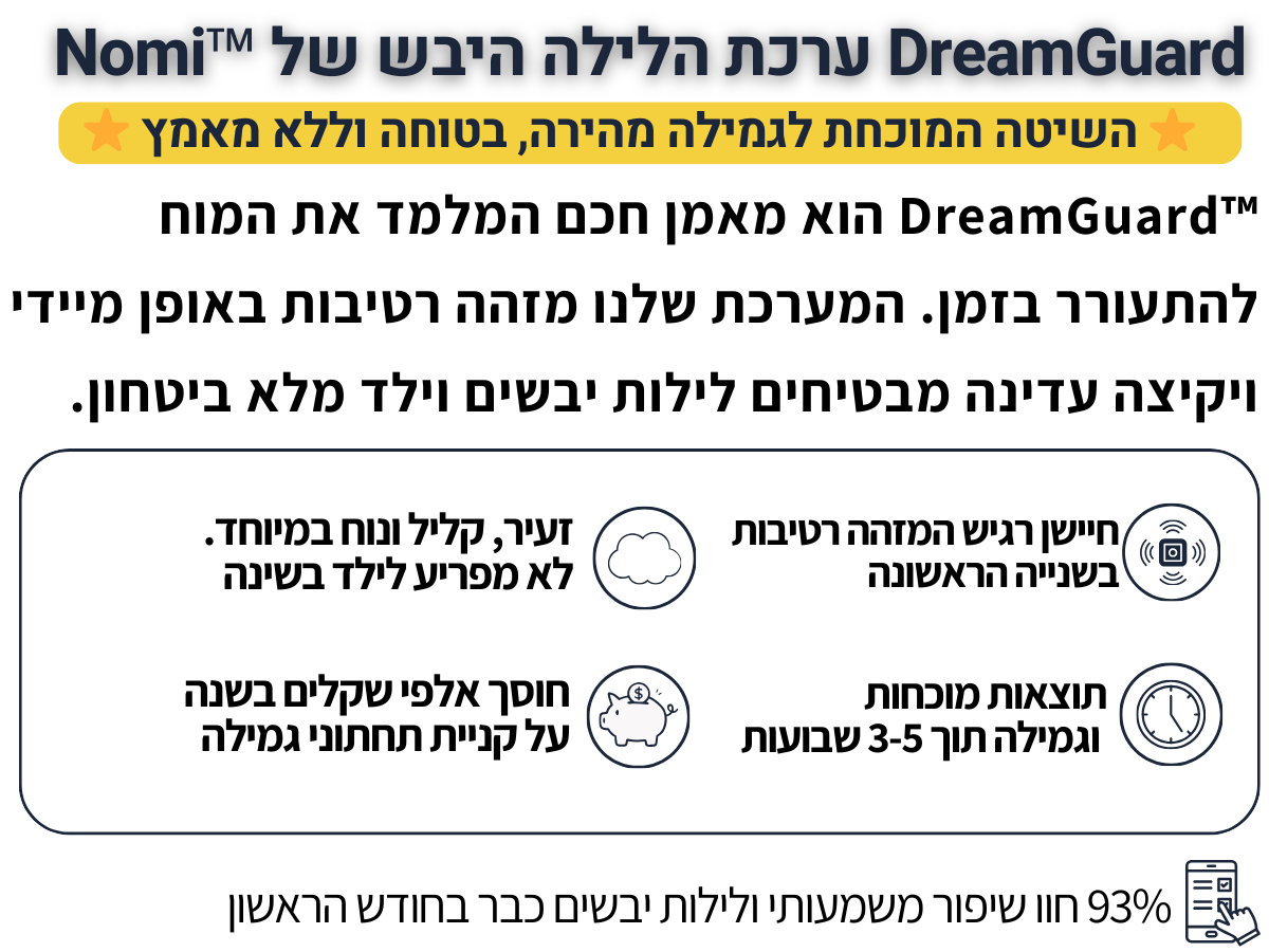 ה-™Nomi DreamGuard הוא הרבה יותר מכלי גמילה לילד – הוא מחזיר את השפיות והאיזון לכל המשפחה.